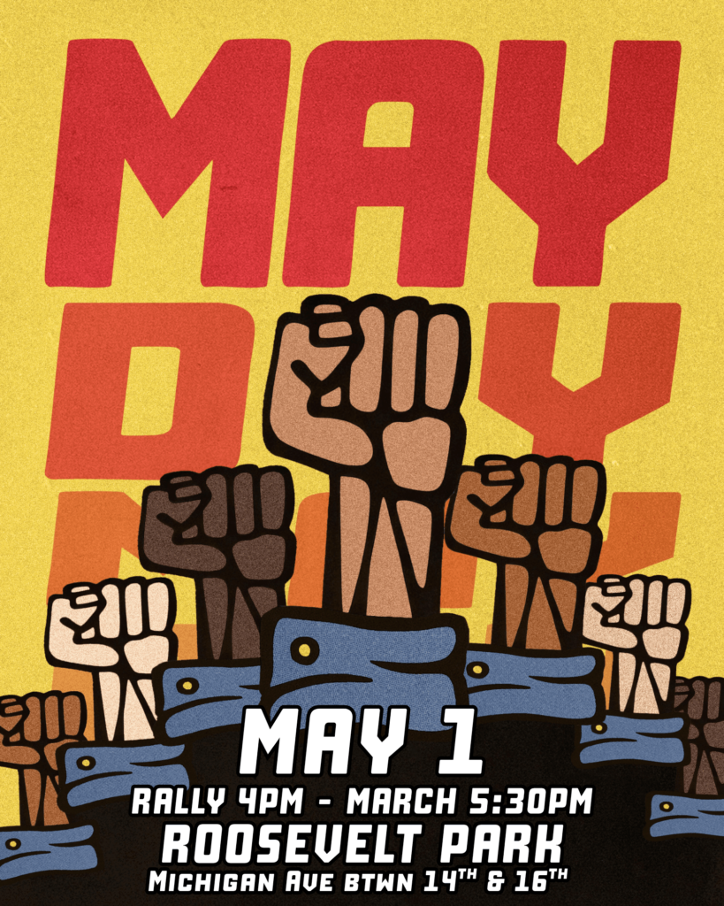 Join us at the May Day rally Fri May 1st @4pm in Roosevelt Park! March is at 5:30 Recommend Parking between Rosa Parks and 14th street. Meet at 1941 Pine St at 3:30pm, and we will walk to the rally at 4:00pm.